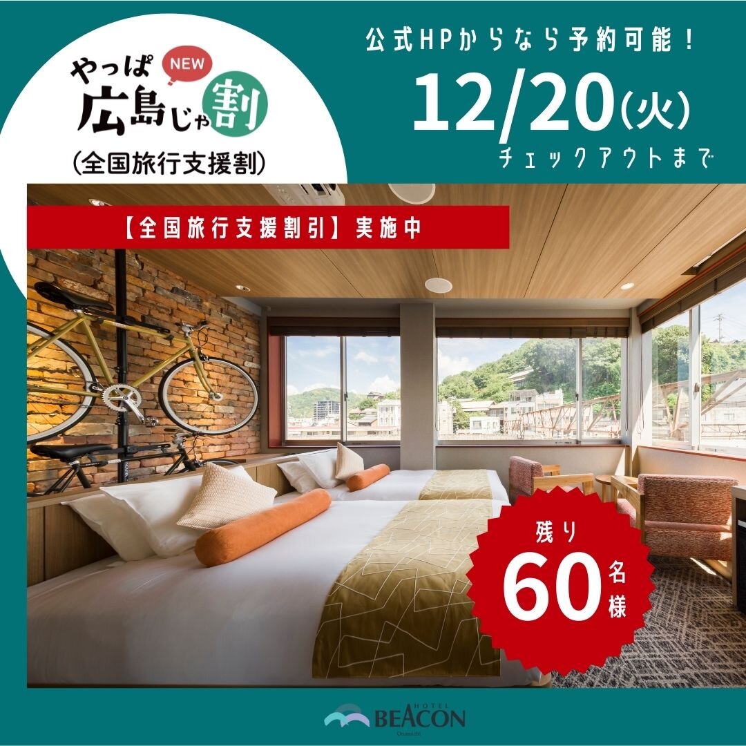 「全国旅行支援割」適用宿泊プラン ホテルビーコンおのみち公式ホームページにて追加販売中